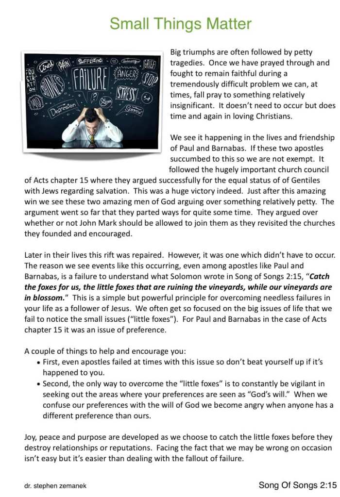 Here you will find and enjoy devotionals and other things from the heart and mind of our wonderful pastor, Dr. Stephen Zemanek. Please note on the devotionals, the editor hasn’t seen it yet. So, please excuse any grammatical errors you may find. We do hope you find them helpful.